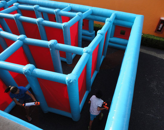 Este juego es un laberinto real donde los niños tendrán que encontrar el camino correcto para llegar a la salida, además es excelente para jugar “escondidillas”. Incluye la renta de 10 pistolas (de agua o de dardos) que sirven como complemento perfecto para la diversión de chicos y grandes.