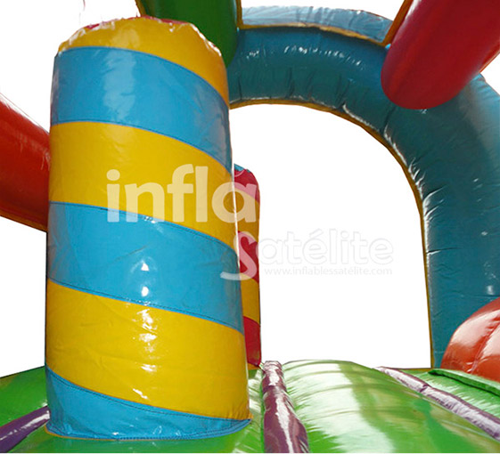 Es muy seguro ya que cuenta con una entrada en forma de túnel que impide que algún niño pueda salirse por accidente. Está cerrado con malla por los costados y también tiene techo de malla lo que proporciona sombra hacia el interior y permite la visión del interior del juego desde cualquier ángulo, uno de los costados está abierto para servir de acceso hacia la resbaladilla. En el interior cuenta con dos pushing bags para mayor entretenimiento de los pequeñines.